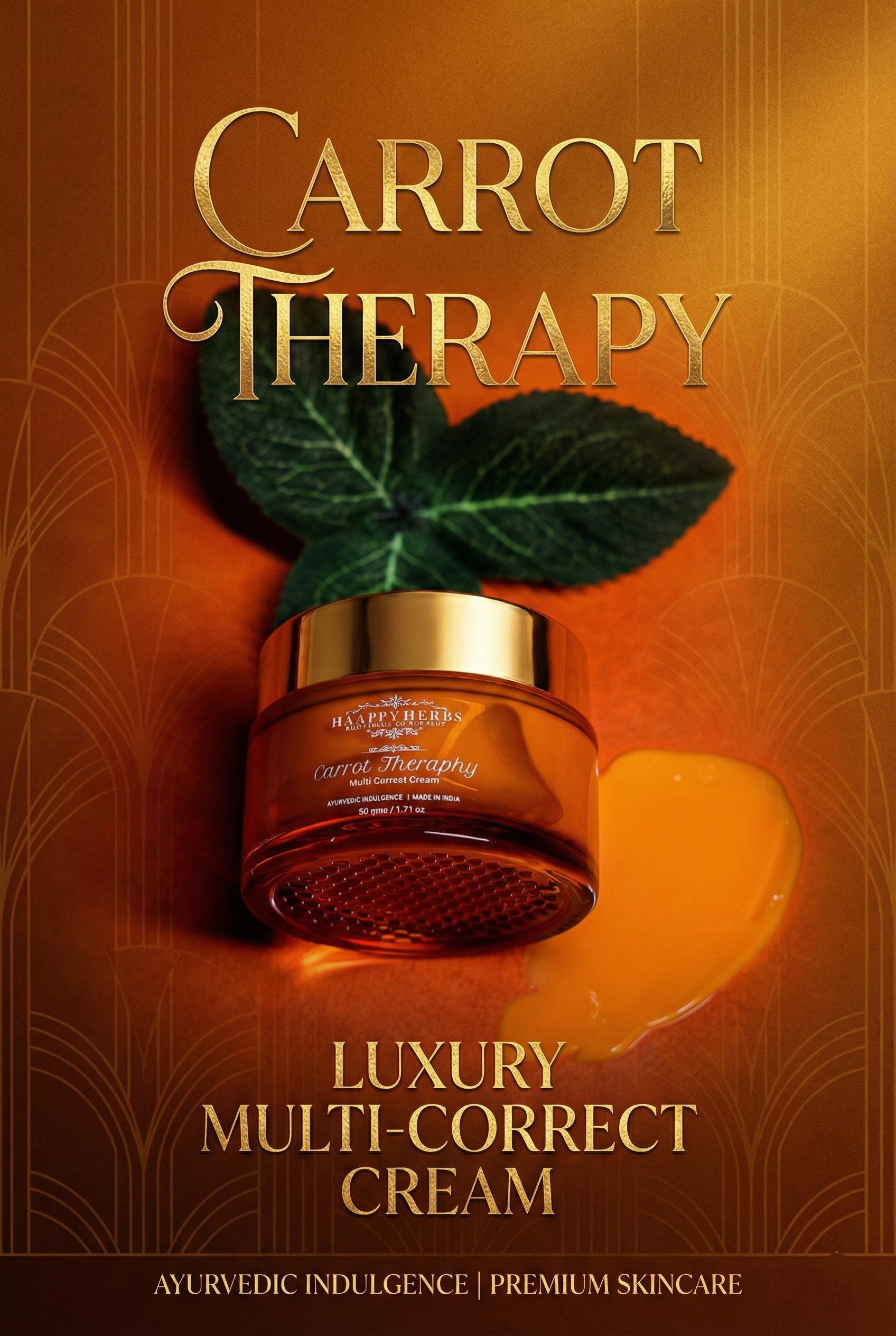 Haappy Herbs Carrot Therapy is a luxurious night cream formulated to repair, restore, and renew your skin while you sleep. Powered with Botanical Vitamin A, Stabilized Vitamin C, and Pure Ayurvedic extracts, this cream works on multiple signs of aging — fine lines, wrinkles, dark spots, uneven skin tone, and dullness.